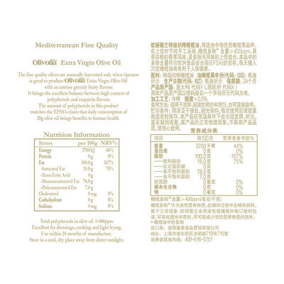 精选地中海的橄榄油,里面的天然多酚含量高,长期食用有利于人体健康,无论是煎炒还是凉拌皆可使用。
