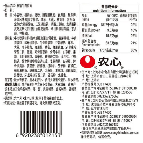 农心方便面香菇牛肉味