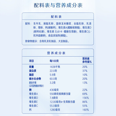 蕴含膳食纤维,能满足身体所需营养,营养均衡。高钙的配方成分呵护骨骼,维持骨骼密度和硬度,关注中老年人身体健康。