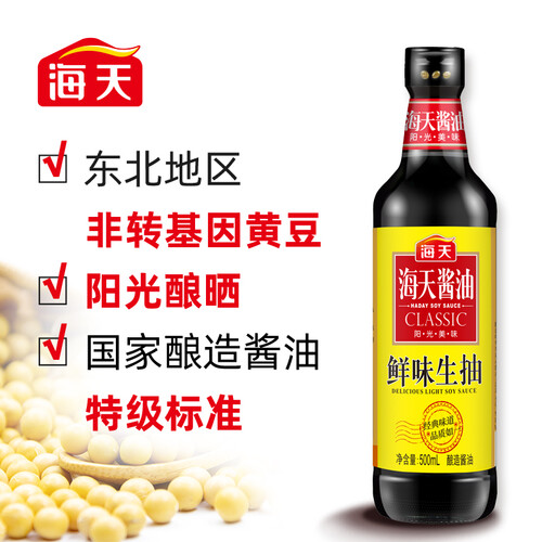 精选非转基因大豆为原料,经过多道工序酿造,色泽红亮,酱香浓郁,清鲜味美。酱油咸度适中,为食材增添风味,炒菜拌菜都可以。