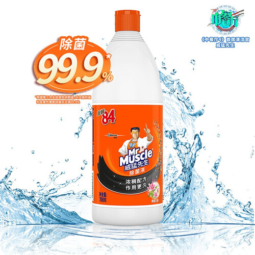 清洁难题,威猛先生一网打尽,提供更强洁净力。除菌99.9%,全新升级,适用于一般环境表面及物体硬表面和白色织物。