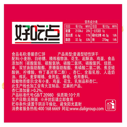达利园 好吃点香脆杏仁饼干