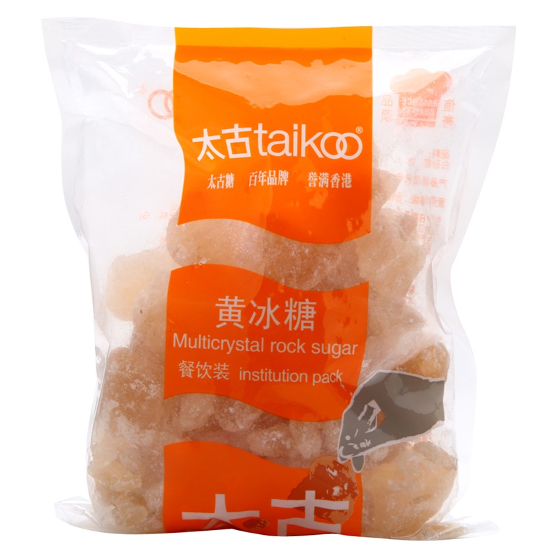冰糖色泽呈现自然黄色,水分含量少,干度高,不易溶化。精选甘蔗制成,蔗香浓郁,入口甜而不腻。