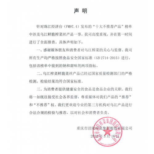 乌江 全形咸香榨菜
