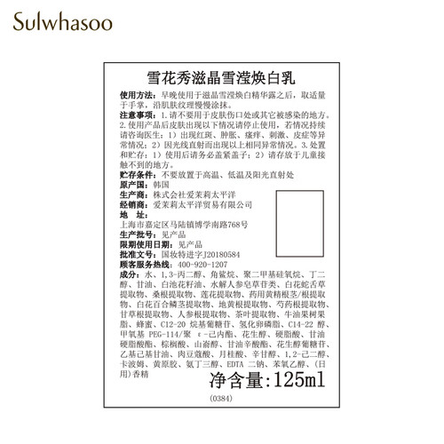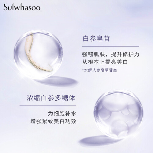 采用珍贵草本亮肤配方,增强肌肤自我呵护力,水润肌肤。其中含有人参萃取物,改善暗黄肌肤,淡化顽固色斑。