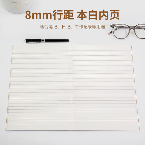 采用70g米白色内页纸,书写顺滑,清晰不易渗透墨水。具有8mm行间距,可以平摊书写,使用超方便。