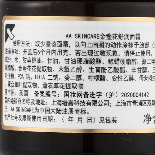 AA网 金盏花舒润保湿清爽面霜