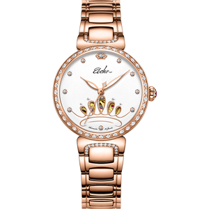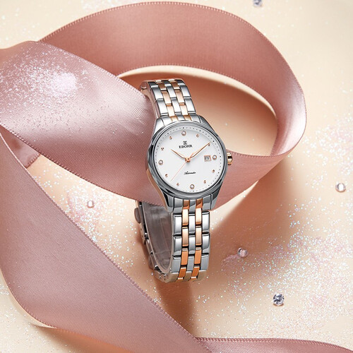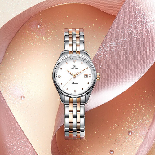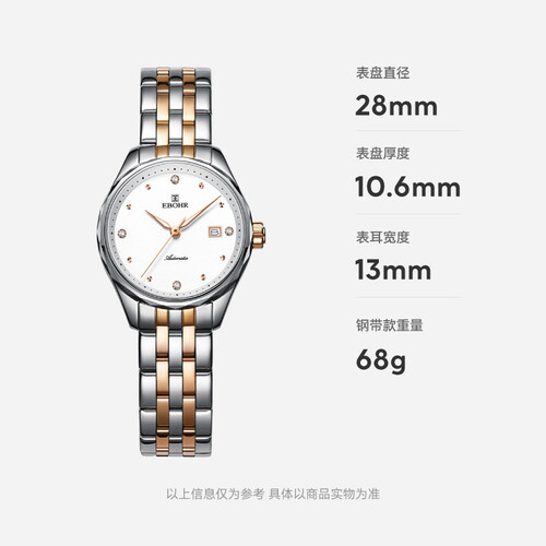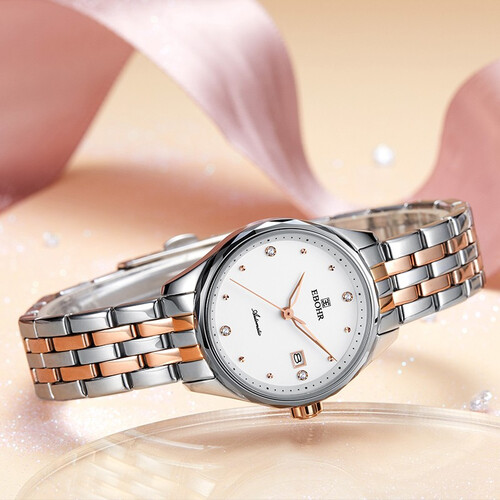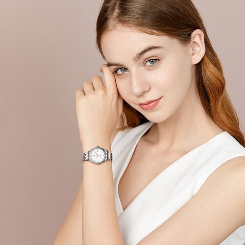 立体钨钢前圈,融入玫瑰金色点缀,凸显佩戴者知性优雅的气质,小圆白盘与罗马时符配以铅笔针,有效提升读时体验。