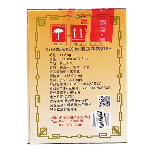 古越龙山 防滑纹路半干型黄酒