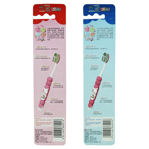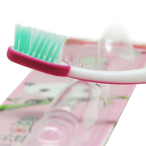 根据儿童的口腔环境特点而设计,前端动力刷毛能够清洁槽牙部分,结合交叉型刷毛,可以清洁到小缝隙间的污垢,呵护牙龈。