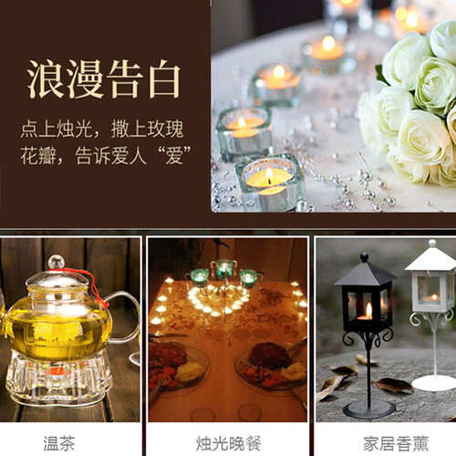 燃烧充分,火光明亮,随时随地享受香薰的愉悦。适用于烛光晚餐,婚礼装饰,浪漫告白,生日祝福,可以根据场景摆放不同的形状。