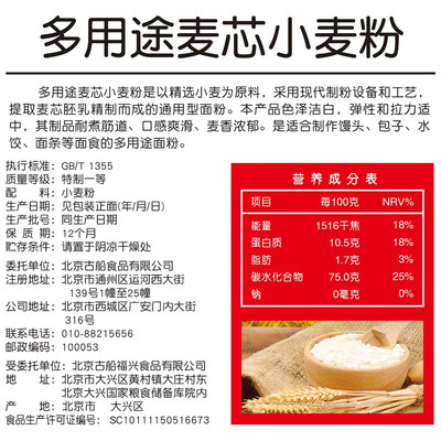 精选优质小麦,以现代精湛工艺制粉,提取小麦胚乳,粉质更加细腻,色泽更洁白,多种面点通用,成品耐煮筋道。