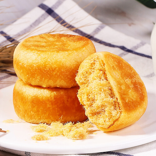 友臣肉松饼精心挑选食材,适量配比绿豆,皮馅黄金配比,肉松形态蓬松如絮,咸甜适口,香味纯正。