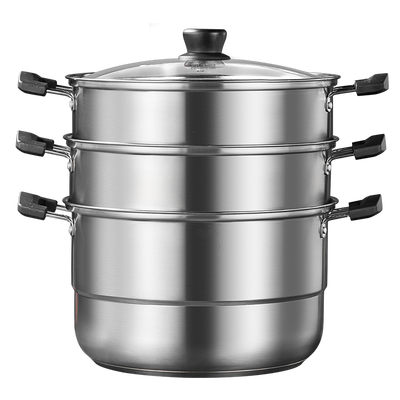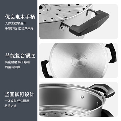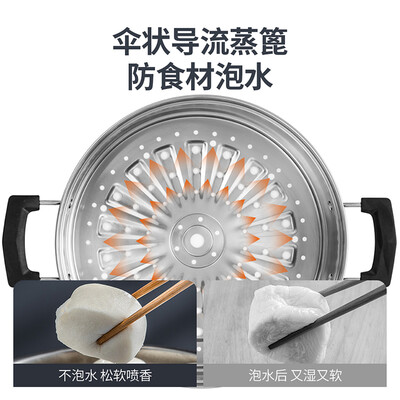 炊大皇蒸滋味三层蒸锅,大肚量设计,底层可煮粥或炖汤,中上两层可蒸海鲜、蒸蛋、蒸饺子馒头等,多种美味一锅搞定。