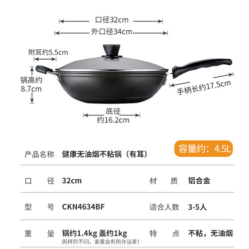 锅面采用螺旋细纹结构,可以有效减少食物和锅底的接触,拒绝粘锅。配置钢化玻璃锅盖,可以清楚看见烹饪状态,更加实用。