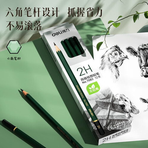 精心挑选优质椴木材质,经过专业软化处理,软硬适中的硬度握感舒适。含碳量高的石磨笔芯,书写细腻顺滑,不易折断。