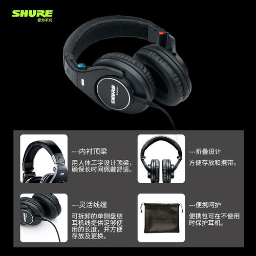 舒尔 全封闭便携式 头戴式耳机
