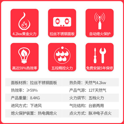 配备的下进风设计,增大进气的面积,源源不断的空气供给保证燃烧的充分性。热电偶的装置,智能感知防止意外情况的发生。