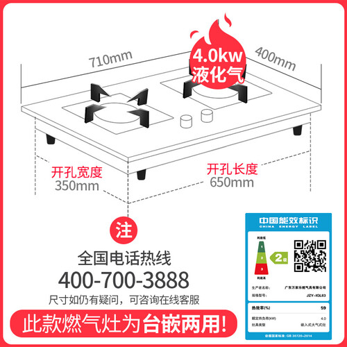 万家乐台嵌两用大火力燃气灶