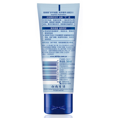 这款护手霜易推开吸收快还不油腻,富含海洋水凝精华,让双手弹嫩柔滑。