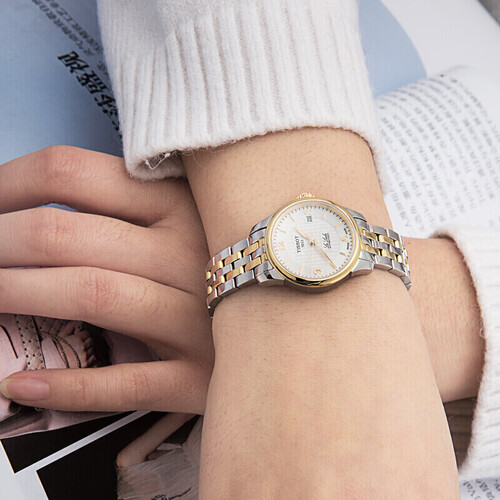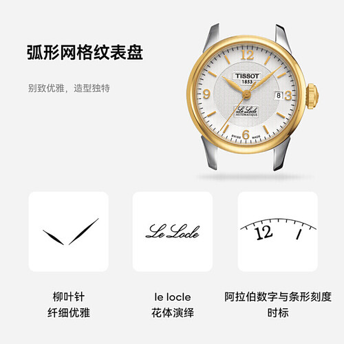 弧形格纹点缀在白色表盘,别致优雅,造型独特美观,增添细节感。阿拉比数字与条形刻度融合,风格鲜明,便于日常读时。