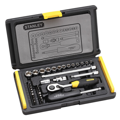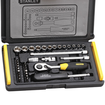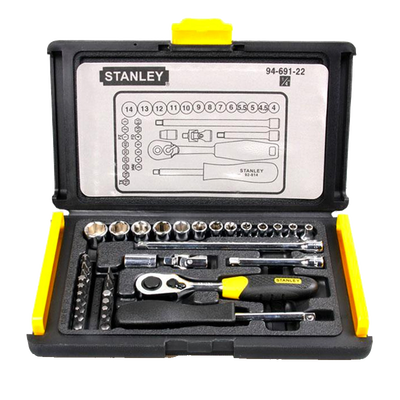 优质铬钒钢材质制成的棘轮扳手和套筒,扳手扭力强劲,可单手转向操作,轻松拧动套筒脱落;公制套筒规格齐全,耐磨耐腐蚀。