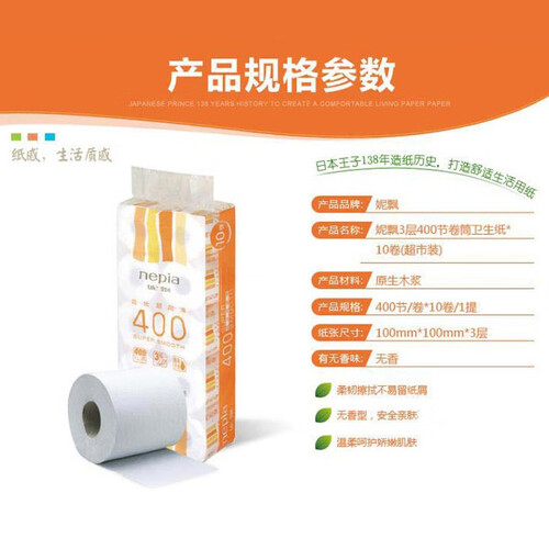 手感细滑|采用进口原生木浆,经过高温消毒,生产过程中不添加荧光剂,让你用得更加放心和安心。吸水性好,吸水后不容易破,也不会掉屑,手感细滑。