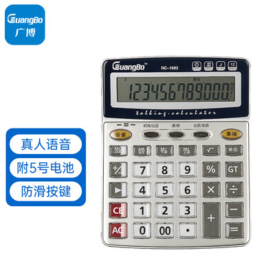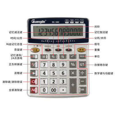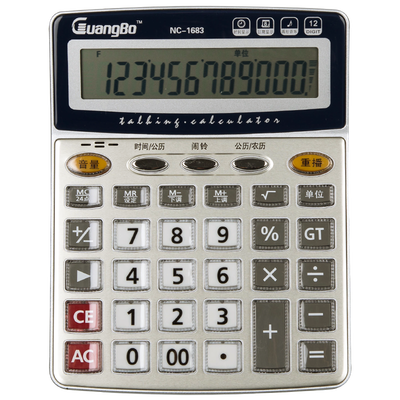广博语音型12位日期闹钟计算器