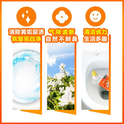 内含亮白成分,可有效清除马桶表面的黄垢尿渍,保持洁净光亮。贴心的弯嘴设计,可深入缝隙清洁,省心省力。