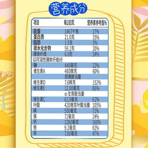 这款奶粉富含膳食纤维,能有效减少脂肪的摄入,并且有助于维持正常的肠道功能,可以加入燕麦片冲泡,味道香滑,营养又健康。