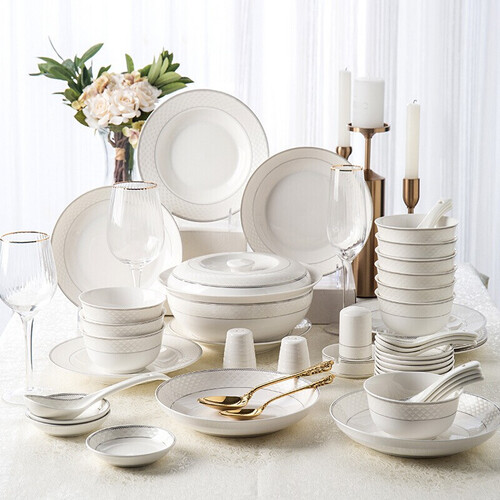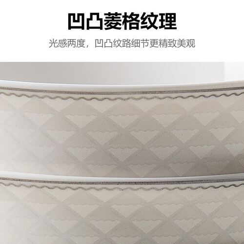 如雪的白瓷与白金描边相结合,尽显潮流大气感。选择新骨瓷加工,瓷面强度高,结实耐用,长久使用也不容易出现划痕。