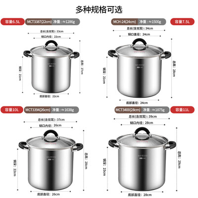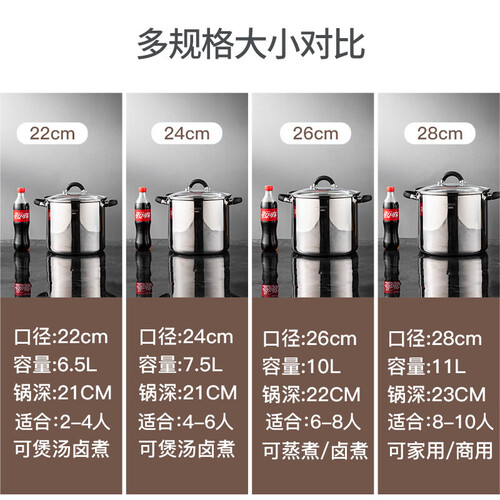 不锈钢材质打造,耐磨耐用防锈防腐,稳固耐用,三层复合锅底,锅体厚底薄壁结构,加热均匀,传热性能好。