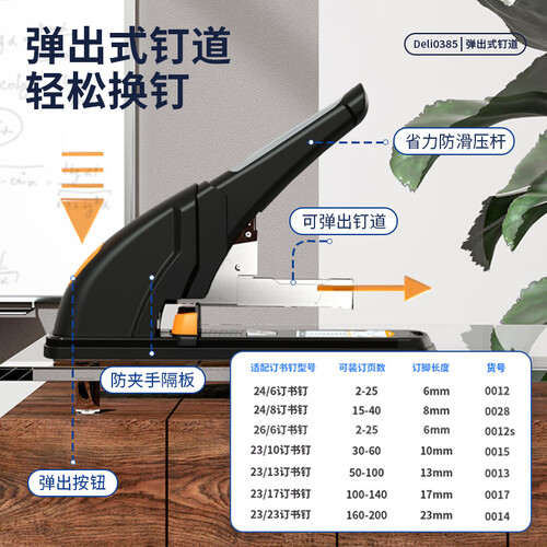 得力弹出式钉道省力重型订书机