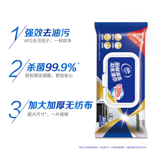 有了厨房湿巾,让进厨房从此不再心累。带有APG去污因子,能够快速地清除厨房用品的表面油污,五分钟就能搞定厨房卫生。