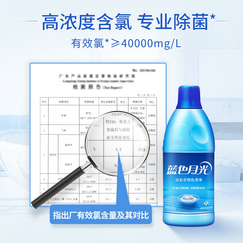 高浓度含氯成分,具有去除黑曲霉、大肠杆菌等效果,为家人构筑守护屏障。结合去渍漂白的功效,对牢固的色渍能有效去除。