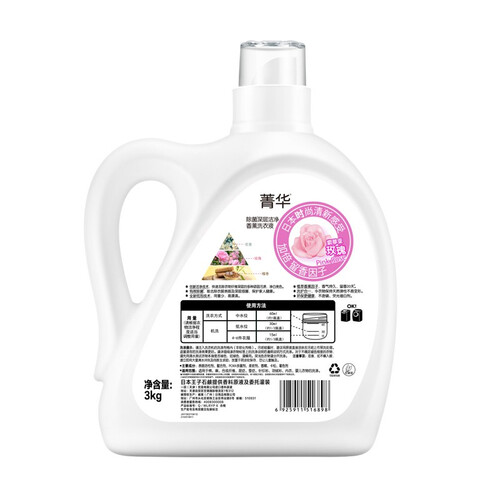 内含加倍留香因子,香味清新,采用亮白洁净技术,快速去除纤维深处的顽固污渍,护衣增艳,添加消毒液配方,除菌洗衣,干净清爽。