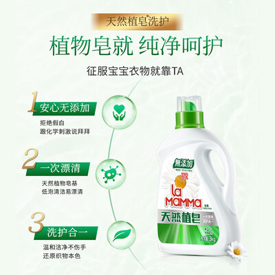 经典棉籽柔配方,含有天然植物皂基,洗涤后的衣物柔顺亲肤。不添加有毒有害物质,既安全又环保,贴心呵护家人健康。