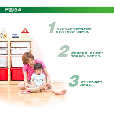 采用快干配方,清洁地板之后不易残留水痕,更显美观。质地温和,使用时不易损坏地板,更加安心。添加松木香气,气味清新淡雅。