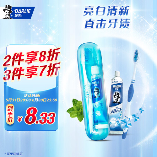 小巧方便,更为节约空间,配备刷毛防护帽,牙刷不易变形,含氟配方牙膏,有效防蛀,螺旋刷毛牙膏,带来4倍洁净。