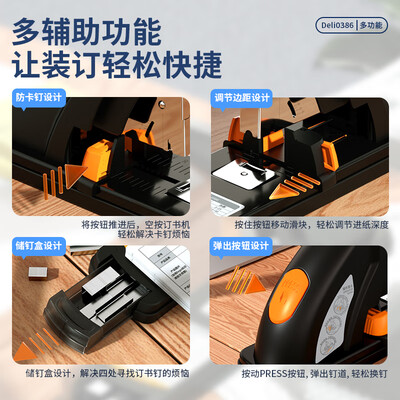 压杆符合人体工程学的设计,操作方便省力。易除钉装置,能够快速移除卡钉,实用性强。防夹手的功能设计,使用更安全。