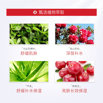 高浓熊果苷,提亮肤色,均匀通透,使肌肤紧实富有弹性。马齿苋提取物,舒缓干燥、泛红等问题,强韧屏障。