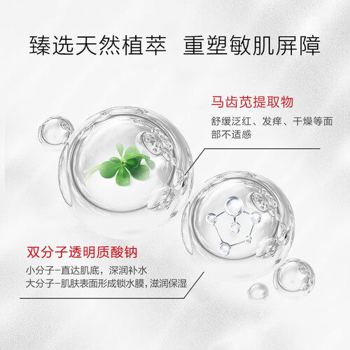 马齿苋提取精华,呵护脆弱的敏感肌,增强耐受性。大分子透明质酸,帮助肌肤形成保护膜,从容应对外界刺激。