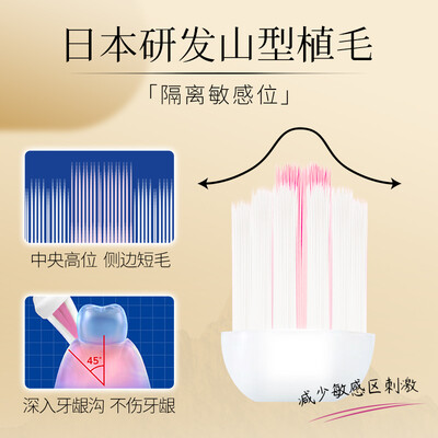 能缓解牙齿疼痛的柔软细毛牙刷,创新外圈短毛设计,刷牙时可以轻松避免敏感区,而且刷毛足够弹韧,能减少牙齿敏感,不伤牙龈。