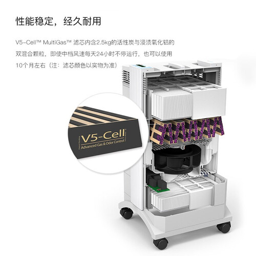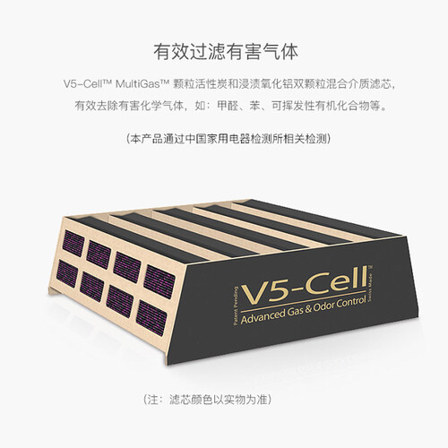 内含丰富活性炭,可吸附有害气体,浸渍氧化铝可将甲醛快速分解成CO₂和水。选用混合介质滤芯,深层净化室内空气,使用无忧。