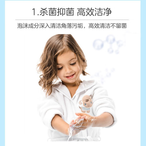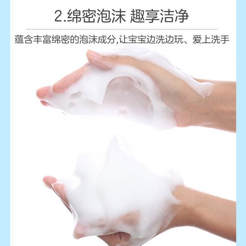 按压式自发泡泵头,泡沫丰富绵密更易带走污垢,洗净小手更彻底。