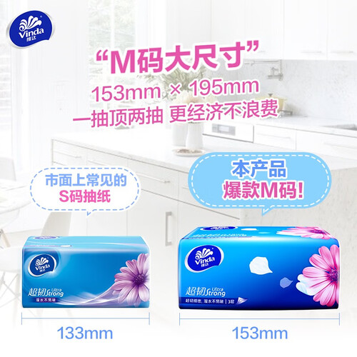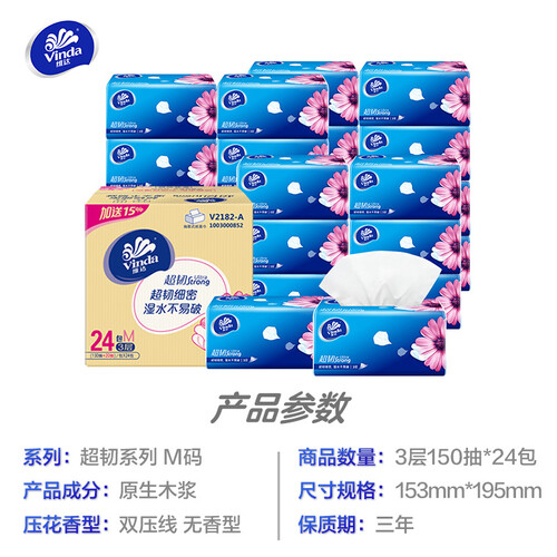甄选天然原生木浆,保证安全用纸,不添加化学成分,保护柔嫩肌肤。采用质感双压线技术,使用时不易散开,给你更完美的居家体验。