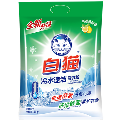 白猫一款老牌子的洗衣粉,其中无磷洗衣粉更有效的去除衣物的污迹,洗衣不伤手,遇水即溶且易漂洗,让洗衣更加简单快捷。