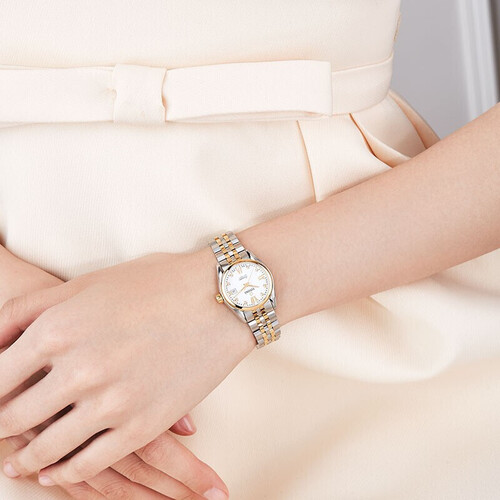 采用了高质量零件制作而成,品质有保障,可放心佩戴。简约的大三针融入了罗马数字刻度的表盘,走时灵动优美。