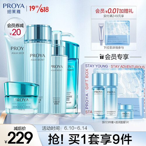 全套护肤产品,可满足日常护肤的需求。奶油质地的微泡洁面乳,清爽洁净不假滑。保湿爽肤水,为肌肤注入水分,密集滋润肌底。