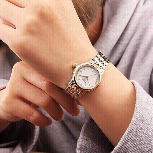 采用小巧的表盘设计,精致细腻彰显女士纤巧手腕,搭配标志logo,简约大方打造轻奢感细节。